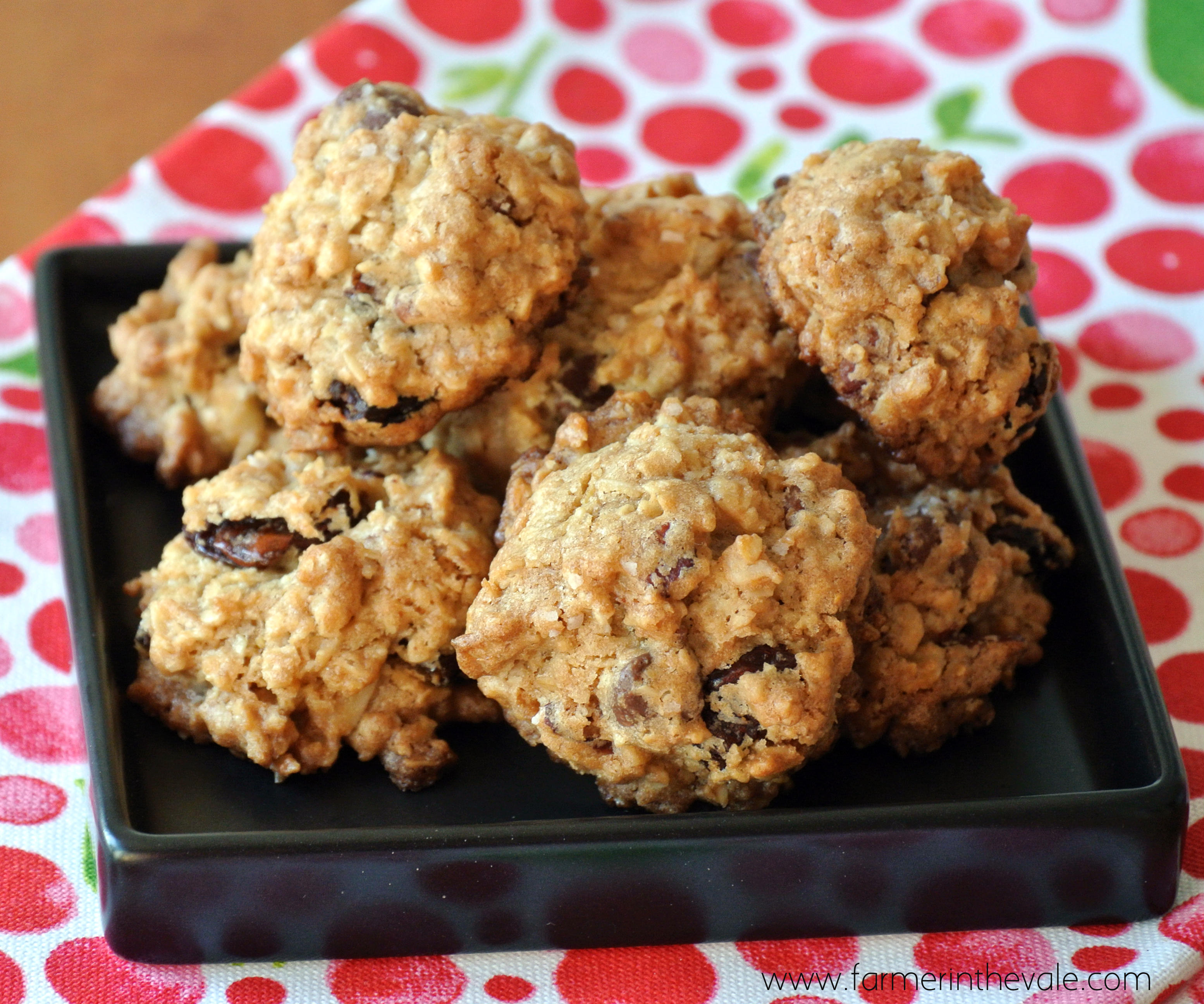 This year these are my favorite cookie. They are super crunchy and are packed with dried fruit, chocolate and nuts. A sprinkling of salt on the top adds just the right amount of saltiness. You might think they are healthy (with all that oatmeal and fruit) until you see how much butter is used!