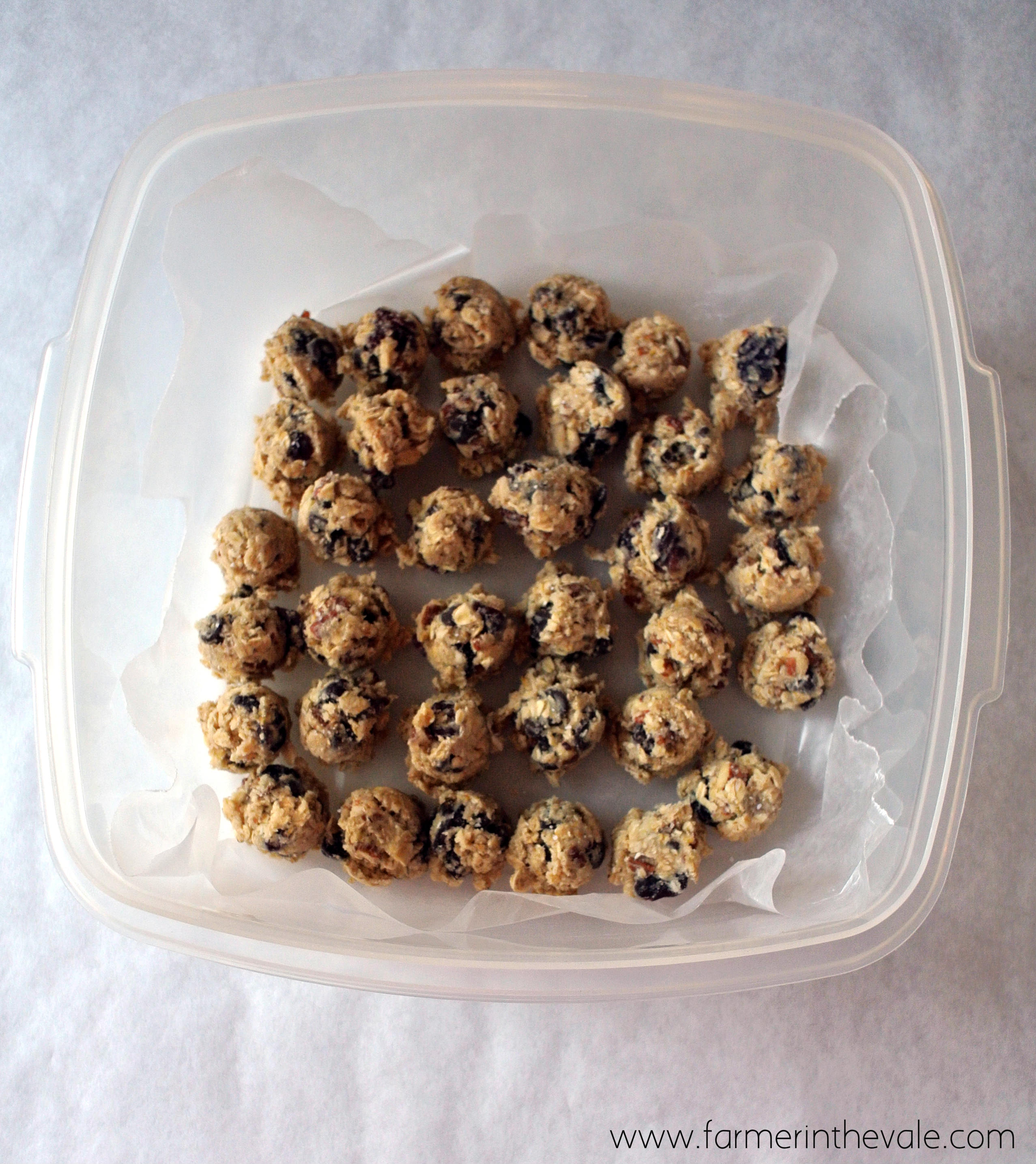 Scoop the dough onto a cookie sheet. The balls can be close together but should not touch each other. Freeze for at least 1 hour then transfer to an airtight container or zippered bag. Freeze until ready to bake. Follow the instructions above to bake the cookies, adding 1 minute of baking time. You do not need to defrost the cookies before baking.